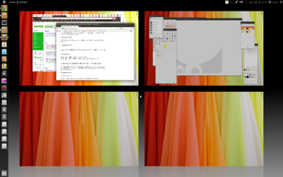 좌측 런처에 두개 이상의 프로그램이 실행되었을때(아이콘 좌측에 화살표가 두개 생겼을때) 해당되는 아이콘을 클릭 혹은 단축키를 눌러주면 화면이 분할되어 나타납니다.