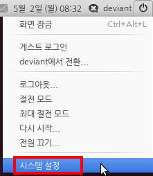 우선 우측 상단의 '전원버튼 - 시스템설정' 에 들어갑니다.