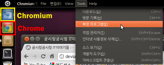 [우분투 11.04] 크로미엄(Chromium) 프로그램메뉴 이용하기