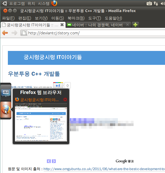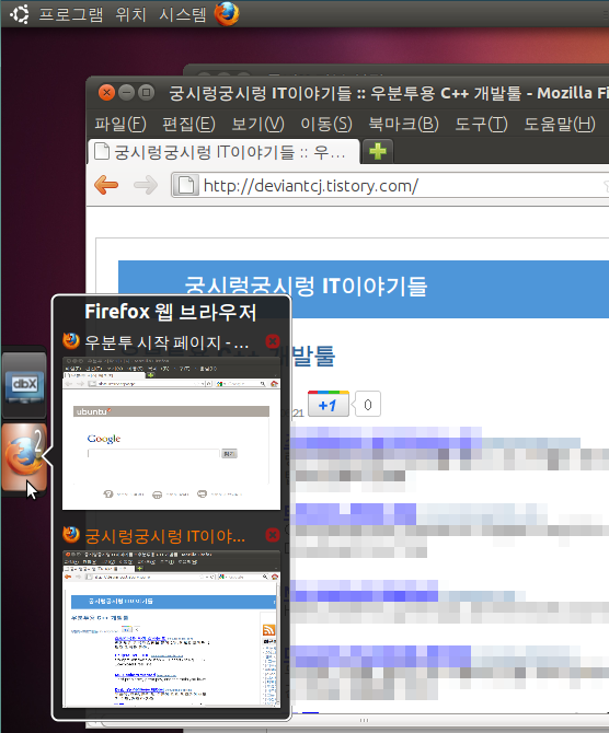 우선 우분투 11.04에서는 컴피즈 충돌로 인해 '미리보기' 기능을 사용할 수 없고요. 물론 런처와 기능이 중복되어 미리보기 기능 없이는 따로 쓰고 싶지 않기도 합니다만...