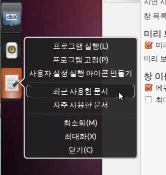 gedit 등에서는 '최근 사용한 문서', '자주 사용한 문서' 등의 빠른목록(quick list)을 지원합니다.