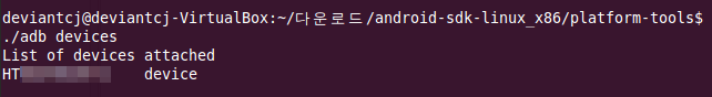'안드로이드SDK폴더(android-sdk-linux_x86)'에서 'platform-tools'폴더로 이동 후 아래 명령어를 입력합니다.