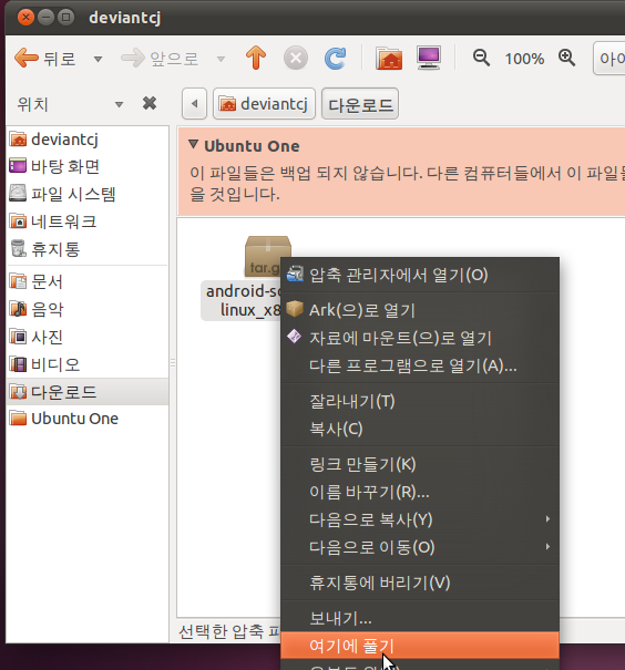 압축을 풀면 'android-sdk-linux_x86'이라는 폴더가 생성됩니다.