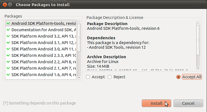 'Accept All'을 선택한 후 'Install'을 클릭합니다.