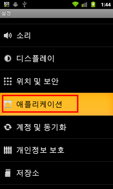 '설정'에 '애플리케이션'에 들어갑니다.
