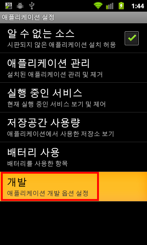 'USB 디버깅'을 체크합니다.