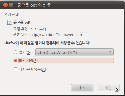 '파일 저장'을 선택하고 '확인'을 누르겠습니다.
