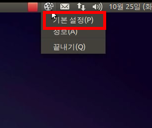 우선 그놈파이를 실행시킨 후 알리미(indicator)에 표시된 그놈파이 아이콘을 클릭하여 '기본 설정'을 클릭합니다.