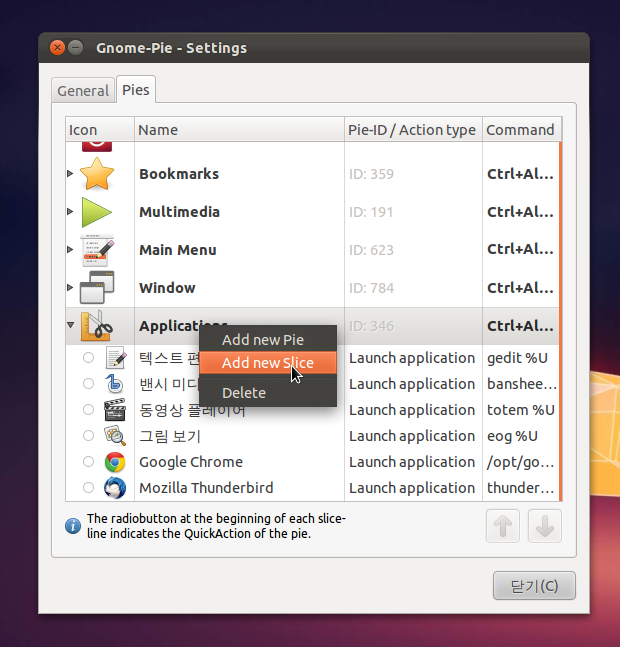 [Gnome Pie] 프로그램에 대한 새로운 접근성!! + 목록 추가하기