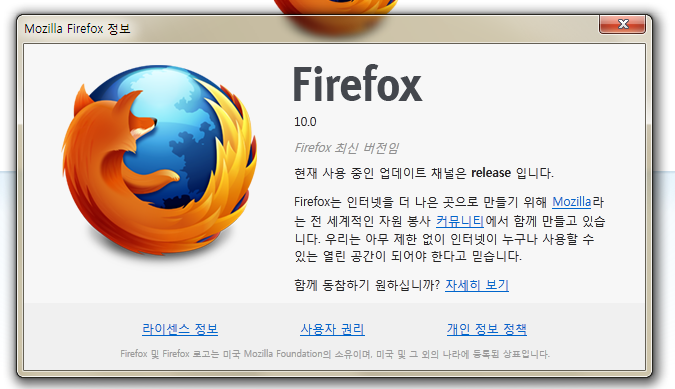 처음 사용하는 분은 http://www.mozilla.or.kr/ko/ 에서 다운로드 한 후 설치 할 수 있습니다.