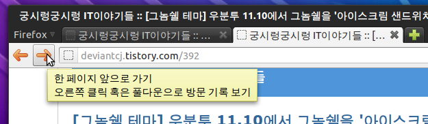 '앞으로 가기' 버튼이 기본적으로 사라집니다.